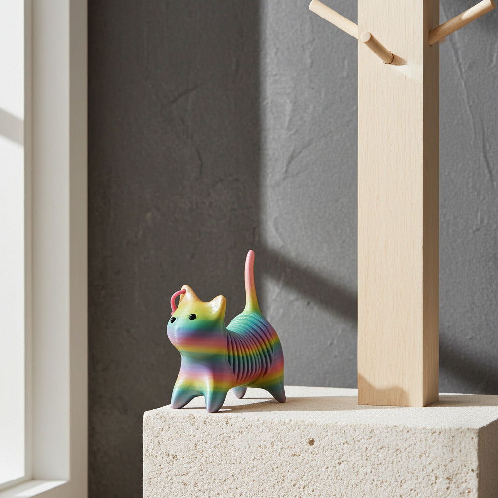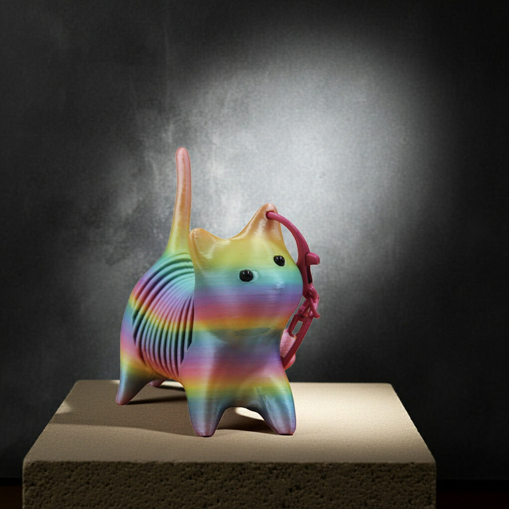 Rainbow Cat Stretch Keychain – Flexible Animal Key Holder (TPZ-36)