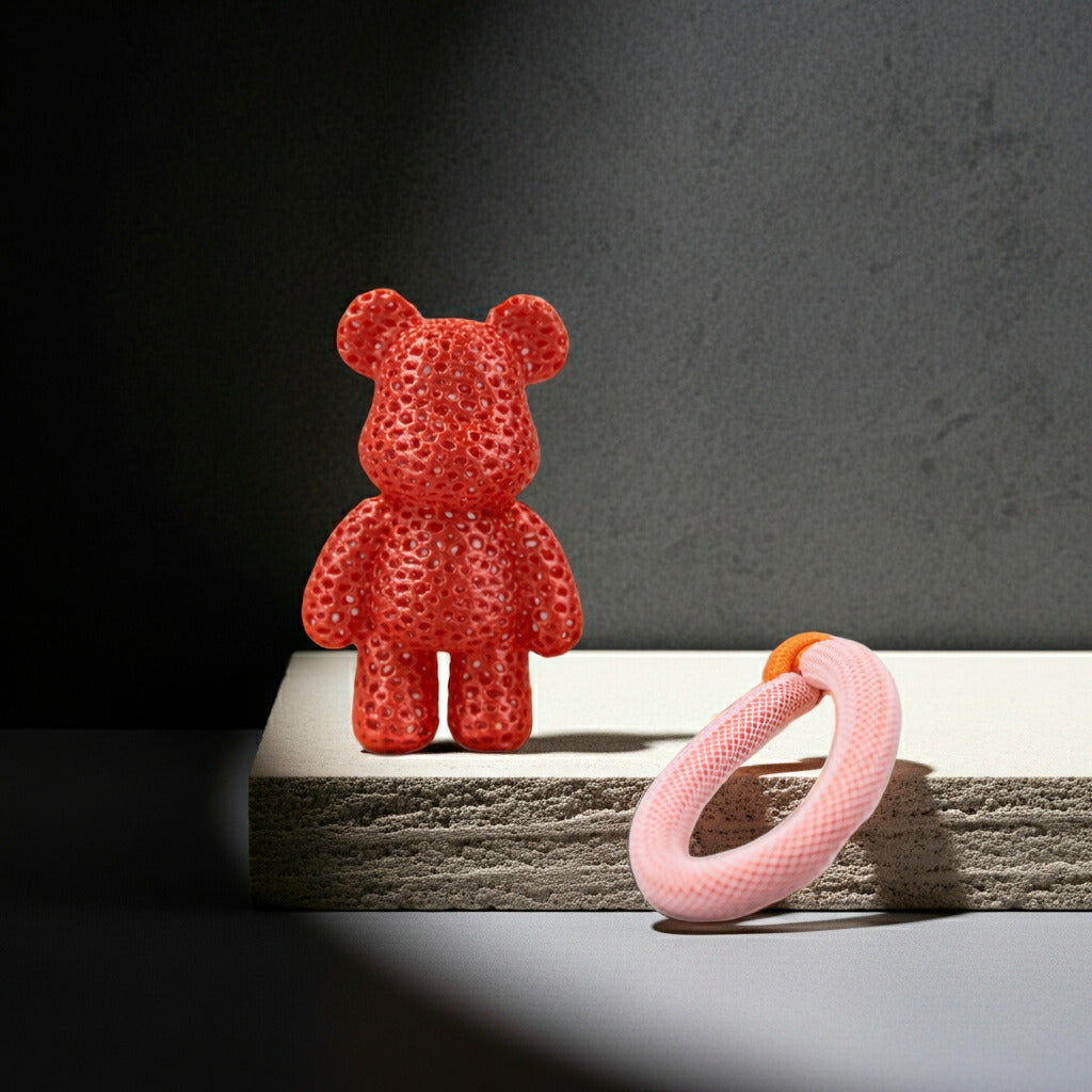 Secure orange ring with soft pink cord for keys, bags, or nursery decor.