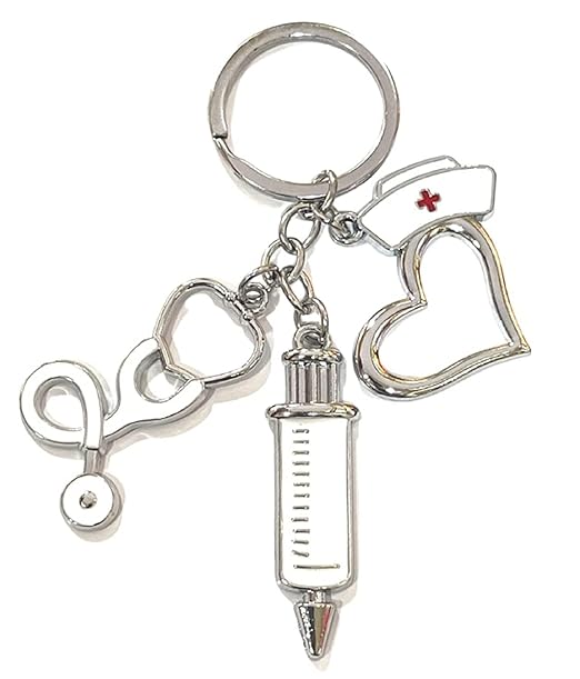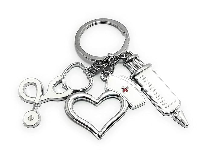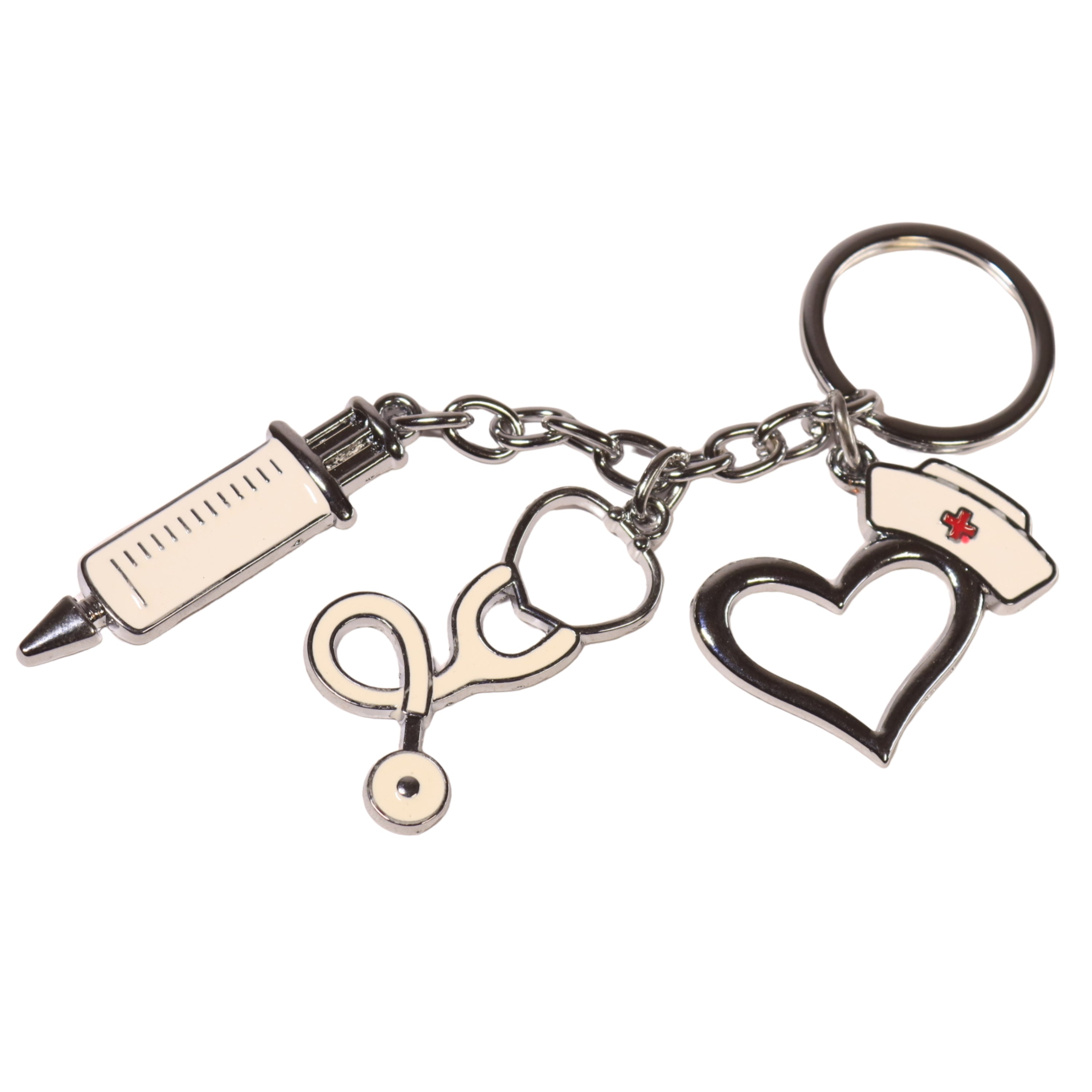 Stethoscope Injection Doctor Metal Keychain (Silver)