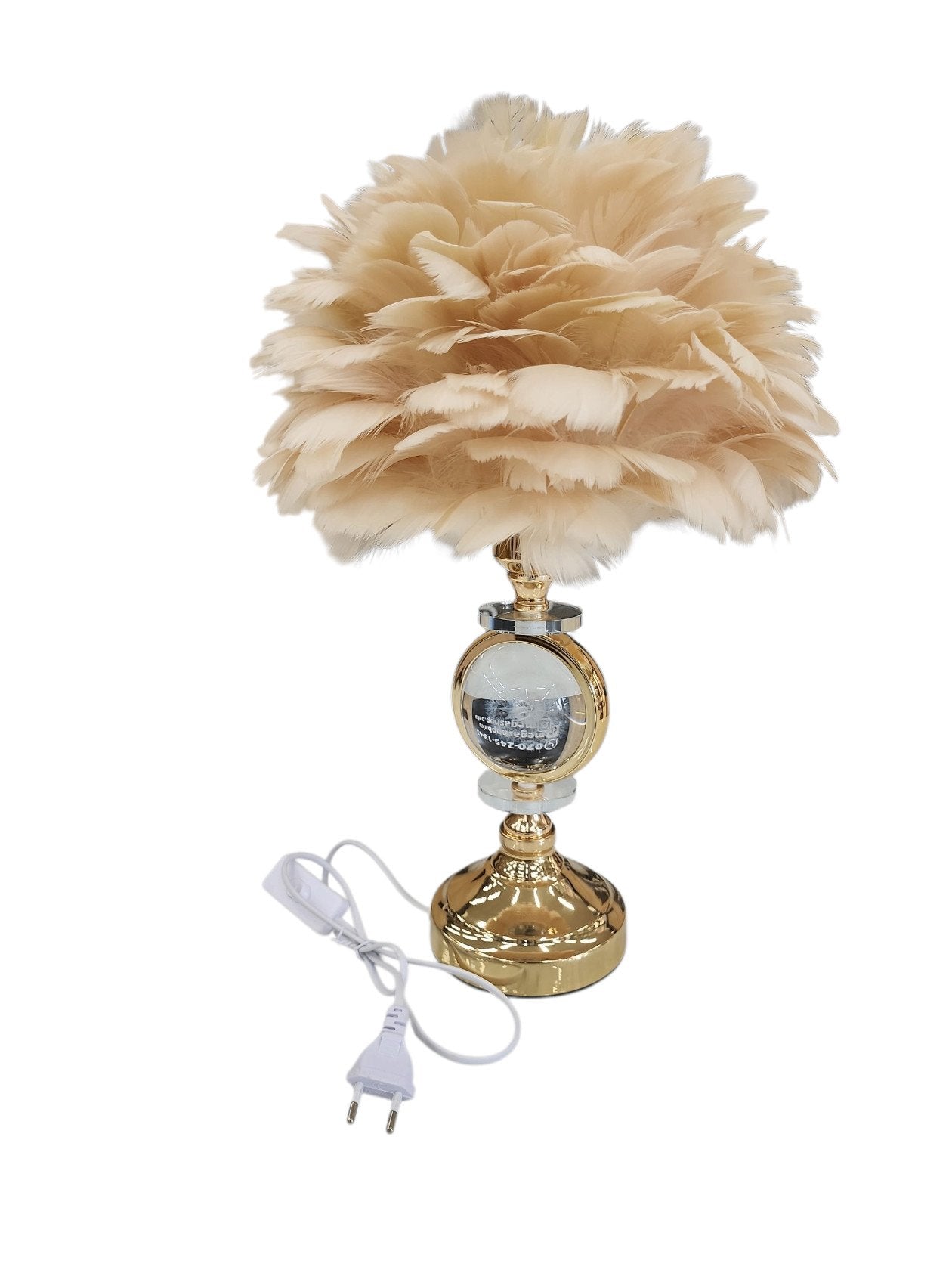 Luxury Feather Table Lamp with LED Deer Crystal Accent – Gold Designer Bedside Light