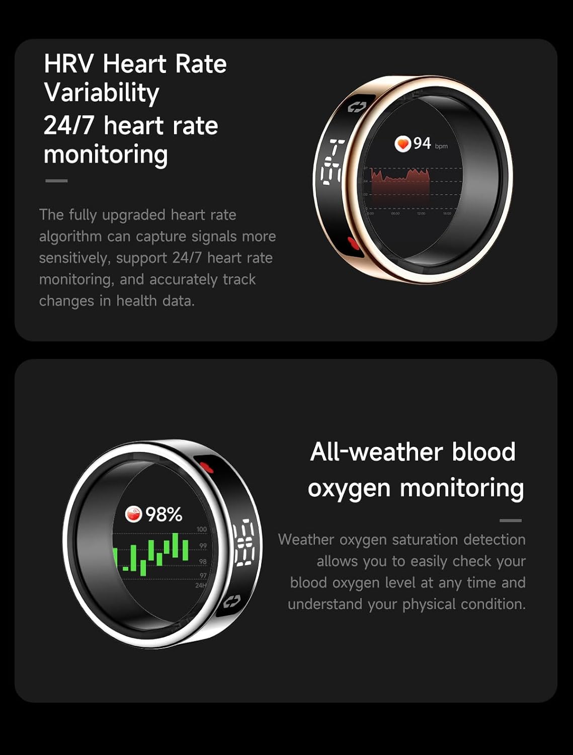 Smart Ring – Health Monitoring, IP68 Waterproof, Fitness Tracking – Stainless Steel Ring for Men & Women