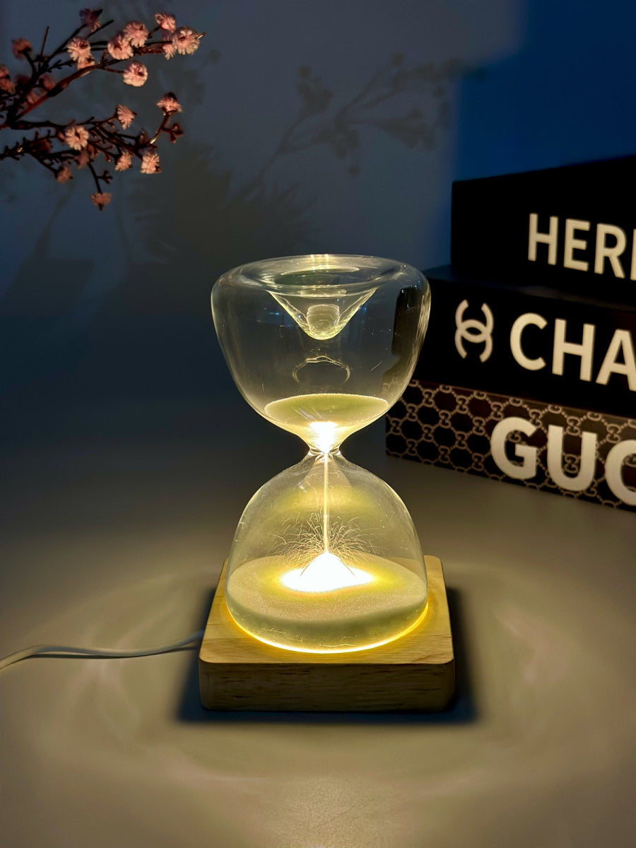 Hourglass Sand Timer LED Table Lamp with Wooden Base