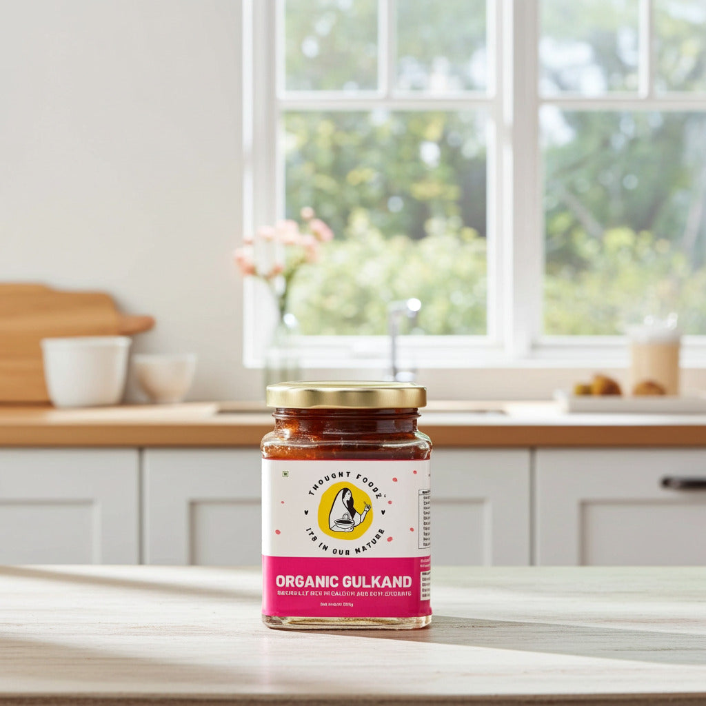 A: Gulkand is a traditional Ayurvedic rose petal preserve, made by sun-drying Damask rose petals with natural sweeteners.