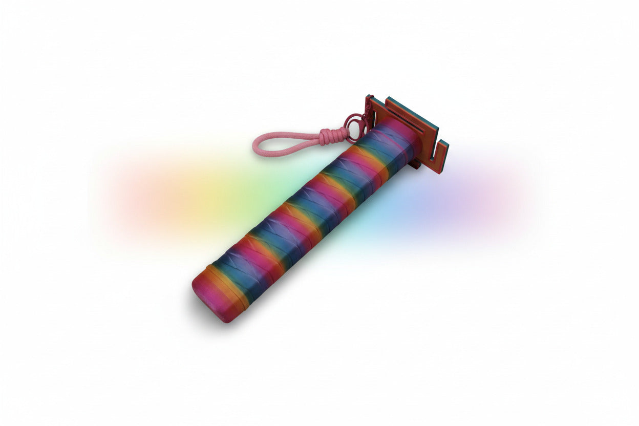Detailed multicolored handle (rainbow pattern) for authentic samurai styling.